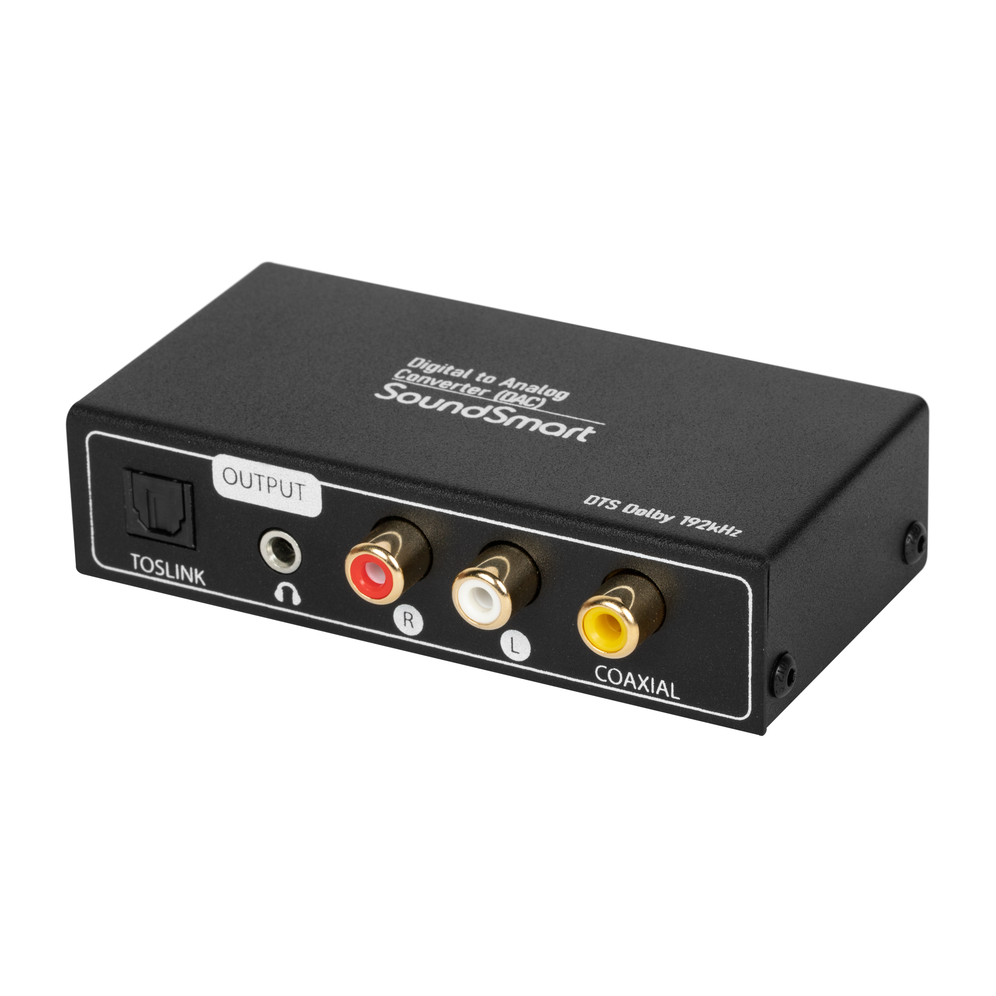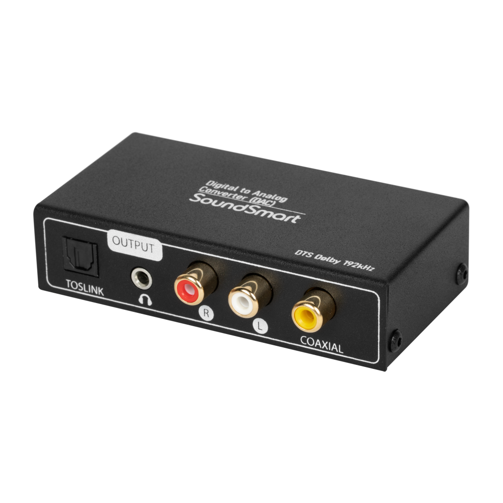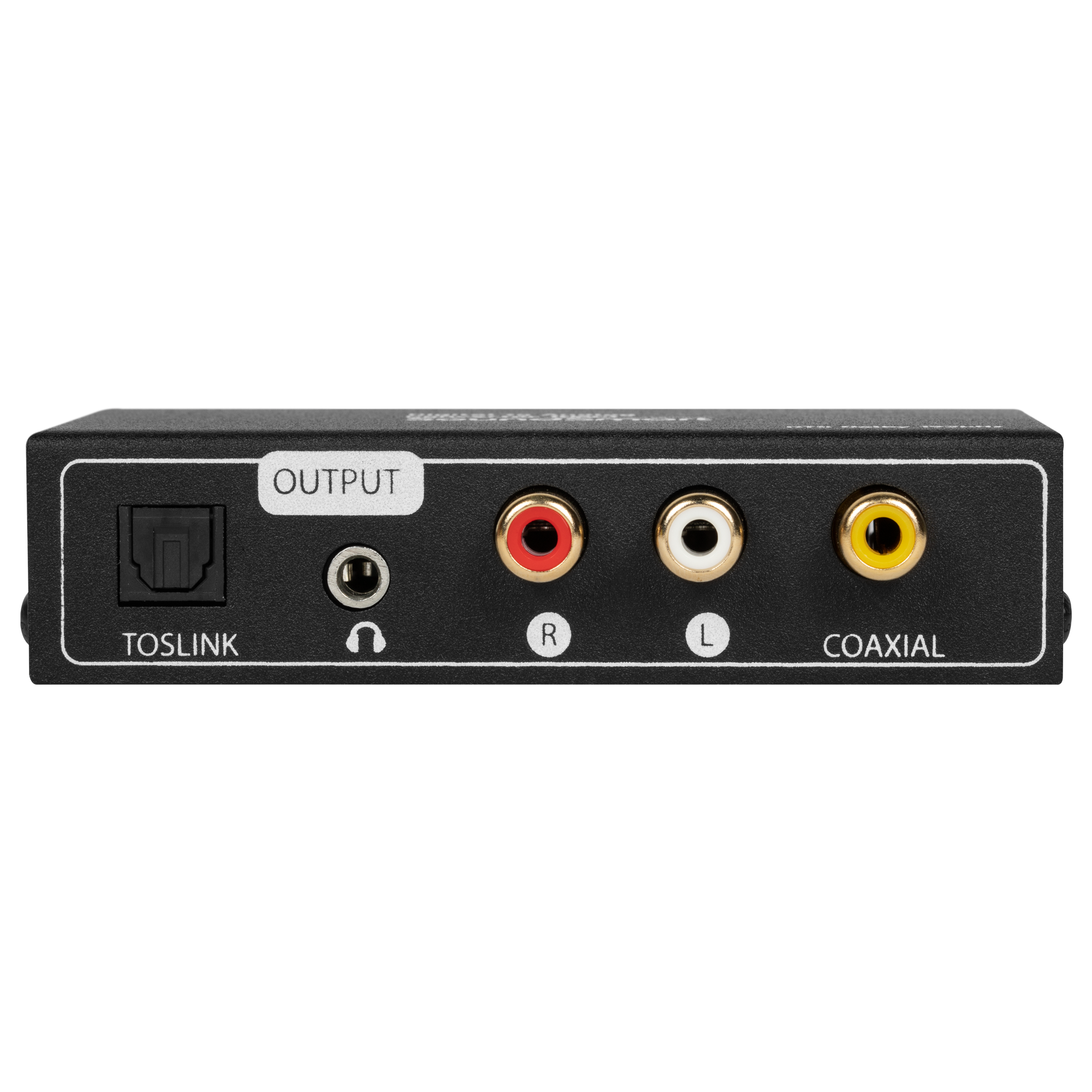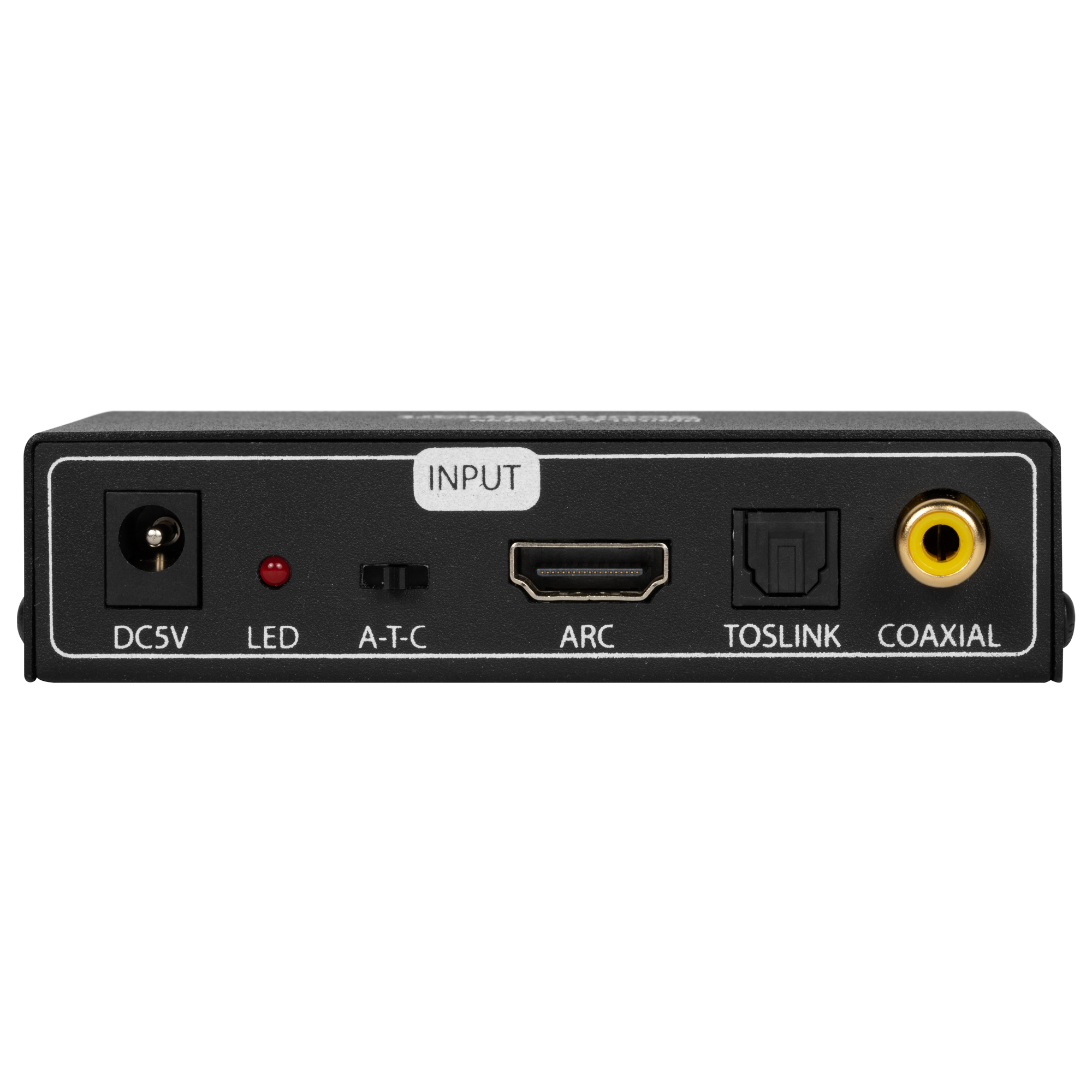 Suporta entrada de áudio Toslink, Coaxial, ARC. Suporta três saídas de áudio: Toslink, Coaxial e estéreo R/L ou saída P2 3,5 mm simultaneamente.